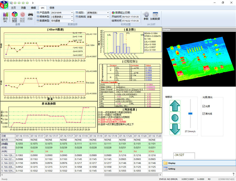 5.强大的报表分析功能,自动生成R-Chart,X-Bar,自动计算CPK。