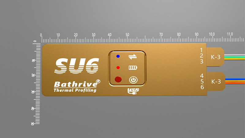 商品名称: SU6炉温测试仪 商品编号: PC-00020 ▍产品特点.biankong img{border-top-left-radius: 15px;border-top-right-radius: 15px;border-bottom-left-radius: 15px;border-bottom-right-radius: 15px; }Bathrive® Su6系列仪器特别适用于测温空间受限的场景,属于Bathrive® 品牌第6代产品,超小体积,仪器主机厚度仅9毫米,为空间极度受限的场景提供精准测温的可能采用航天级超低功耗32位MCU——使得仪器仅3